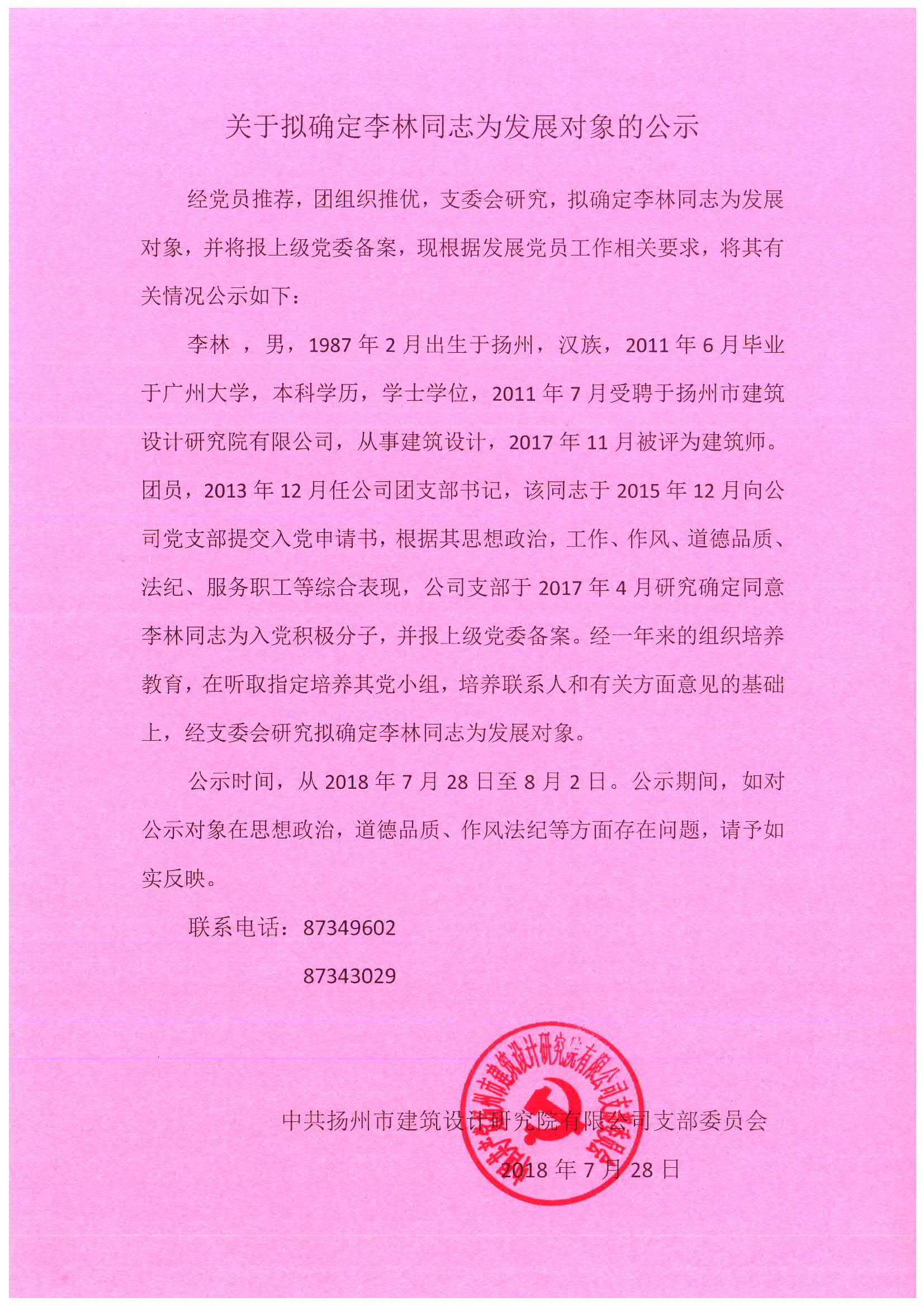 ·關(guān)于擬確定李林同志為發(fā)展對(duì)象的公示